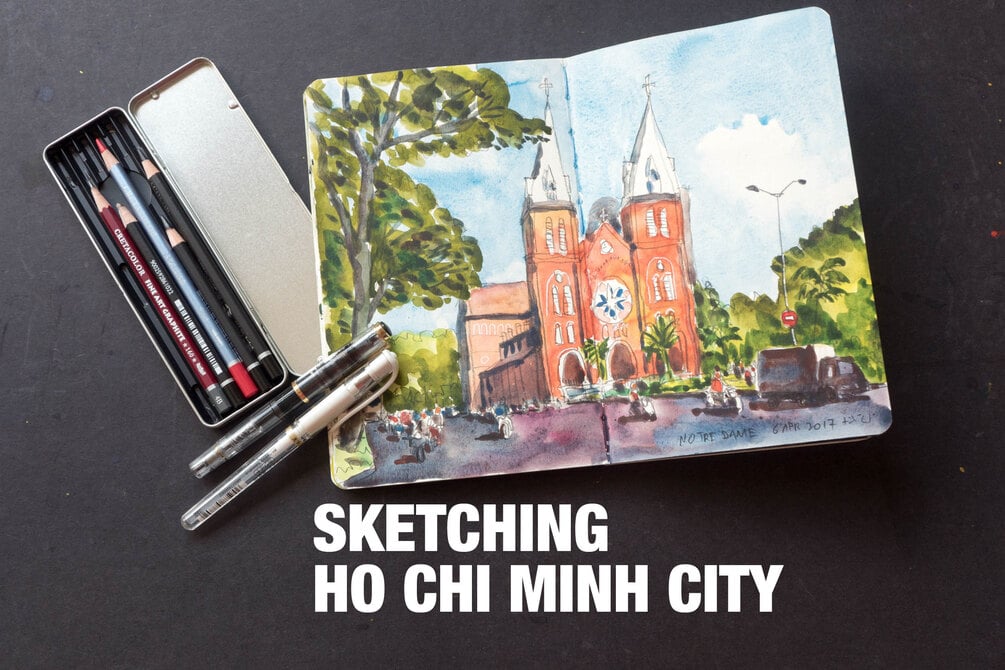These tutorials look at how I draw different places of interest in Ho Chi Minh City. I talk about tips and techniques of using pen, pencil and watercolour to create a travelogue journal.